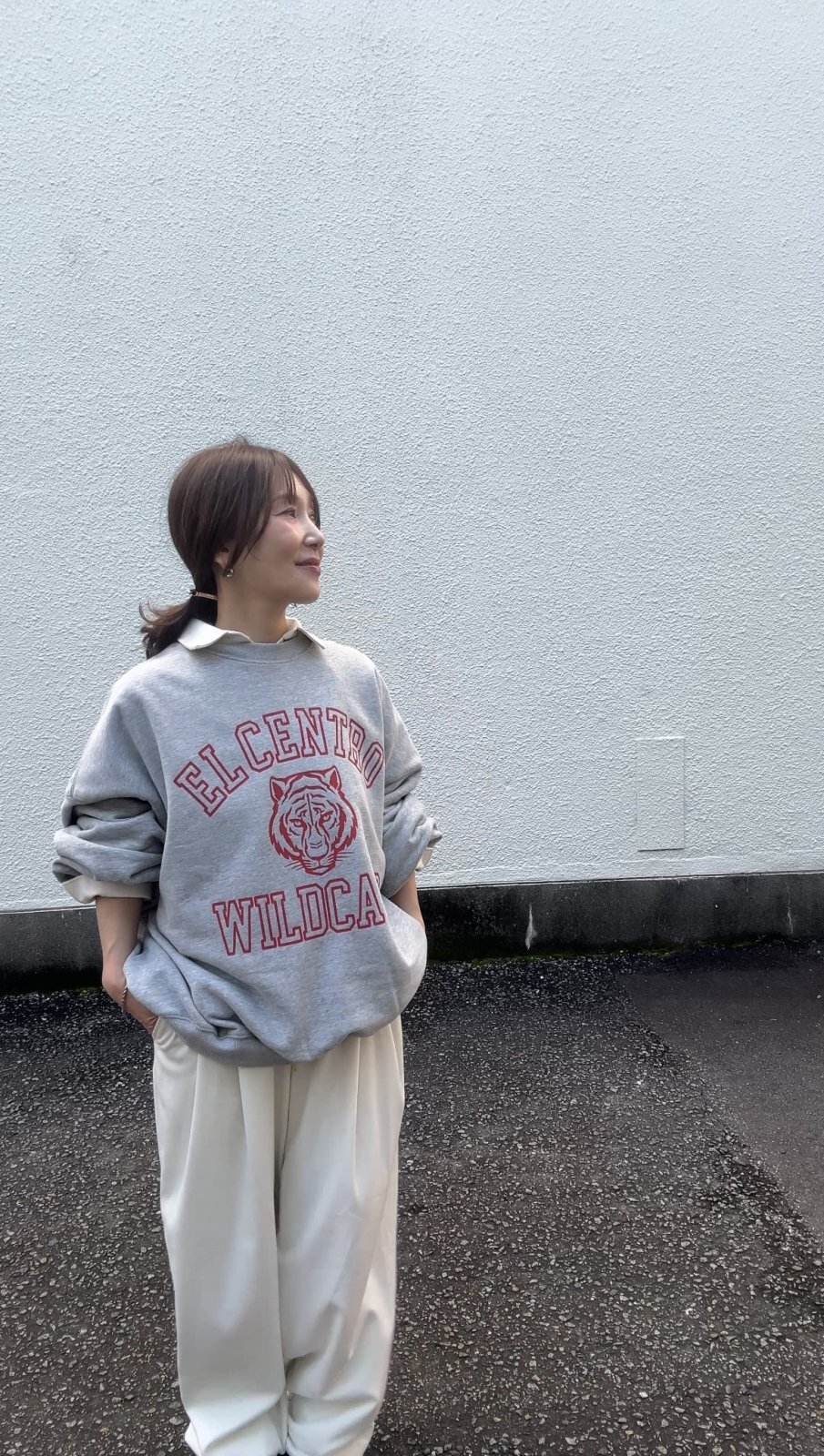 ビッグシルエットのスウェットが今っぽいシルエットのスウェットです。